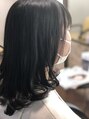 黒髪ベースで毛先巻き。せっかくのストレート毛なので根本からはストレート毛先のみをアイロン36mmで2回転。根本からはストレートなので毛先は大きいアイロンでも、しっかり巻いてあげるとベスト。