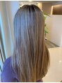 細かく20枚入れたハイライトに根元はリタッチが伸びてきても気にならないように暗めにグラデーションをかけているので、長く楽しめるダブルカラーです。ストレートでも、巻いても可愛いペールホワイトアッシュです。ケアブリーチで最小限のダメージです。