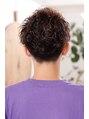 サイド、えりあしは短めに刈り上げ。トップは少し残してカットしました。サイドは浮きやすいのでワックスで潰すようにおさえます。