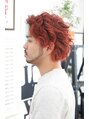 サイドからえりあしまで刈り上げ。その上の毛は長めに設定しブロックにかぶせています。カラーはダブルカラーでレッド系のカラーをのせています!