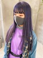 ムラサキ紫バイオレットぱっつんブリーチダブルカラーストレート