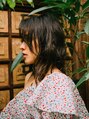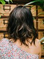 鎖骨の長さで毛先を軽めにカット。バングは流して、バックにつながるように少し長めにカットします。ベースはダークブラウンで、少し太めにハイライトを入れて立体感の出やすいようにカラーしました。
