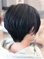 くびれ感のある黒髪ハンサムショートスタイルです!トップに少しボリューム感を出すことによって小顔効果にも♪