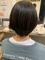 扱いやすいショートボブ。乾かすだけで丸みがでて朝のスタイリングも簡単です^ ^カラーは透明感のあるグレージュカラーで