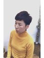 若干のツーブロックグラショートです。イルミナカラートワイライトで白髪をカバーしてます。品のある色味でキレイにきまってます。オシャレショートヘアはお任せください。