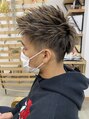 サイド、バックを刈り上げたツーブロックスタイル。全体にハイライトを入れ動きたっぷりのスパイキーショート