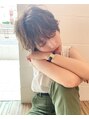 外国人風のお洒落なふわくしゃショートヘア。パーマはワンカールショートをかけて、ワックスでふわくしゃにスタイリングしました。カラーは髪が柔らかくみえる明るいオリーブアッシュで染めています。