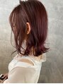 外ハネ×ラフウェーブ×ローズレッド肩につくラインでカットして外ハネにスタイリング☆ローズレッドのカラーで可愛さをプラス♪