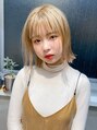 ブロンドミルクティベージュボブ切りっぱなしハイトーンブリーチ