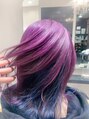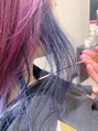 ケアブリーチでしっかり抜いて、インナーはブルー単品。表面は、パープルカラー。色落ちも楽しめるカラーです。(EARTH恵比寿)