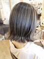 ダークアッシュのベースカラーにハイライトをオン!カットは外ハネできる長さのボブ。