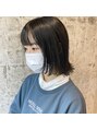 パツっとラインだした切りっぱなしボブに、顔まわりだけレイヤーを入れて動きをつけたスタイル
