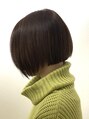 スタイリングが楽な前下がりミニボブスタイルです。コンパクトなスタイルで襟足もスッキリしているのでタートルネックやハイネックのスタイルにも合います。AVEDA髪質改善