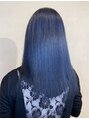ブリーチによりオレンジ味を取り除き透明感のあるネイビーブルー☆オレンジ味が強い方でもしっかりとブリーチ回数を相談して綺麗なお色をご提供します!