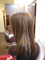 ロングレイヤースタイルです。伸ばしているので、長さは変えず、中の厚みを取って、軽さと動きを出しています。