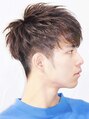 前髪を跳ね上がるようにデザインし、ワイルドさと男らしさを兼ね備えた究極のアップバング!ナチュラルブラウンで大人かっこいい