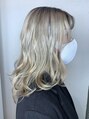 2回ブリーチ後にシルバーベージュで透け感のある色でオンカラーしています。