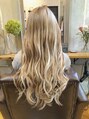 シールエクステ60枚で、地毛に合わせたミルクティーベージュのロングスタイルに!ホワイトのハイライトを入れて明るめなスタイルにさらに動きを出しています。