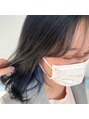 ワンブリーチで作る、鮮やかなサファイアブルーカラー♪表面は、ブルーブラックで透け感を♪地毛とは違う軽いイメージになります◎