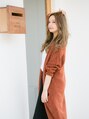 ゆるいウェーブと、ざっくりしたかき上げでセンタ―パートにすることで甘すぎず大人カワイイスタイルに!。カラーは14トーンのミルキーベージュで軽さを出して。