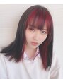人気のフレーミングカラーブリーチは1回、バング部分のみ根元からブリーチ。オンカラ―時は地肌が赤く染まらないようにティントバーのローズで染めた後にカラーミューズのREDをギリギリから塗布します。赤は2回染めると濃くなります。