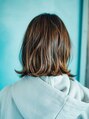鎖骨あたりで少し前下がりになるようにカットしたナチュラルなミディアムスタイル。毛先を外ハネにすることでカジュアルめな今っぽいスタイルに仕上がります。