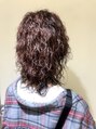 顔まわりを切り込んで、つよめにパーマをかけたウルフカット