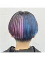 水色カラー×外ハネbobブリーチカラーインナーカラー