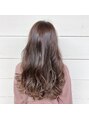ライトピンクベージュ。女性らしい柔らかいカラーかつ、くすんだ透け感のあるアッシュをプラス。仕上げも柔らかさの出るミックスウェーブでとことん追求。
