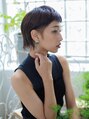 頭の形を調整し、コンパクトなショートスタイルに☆スタイリッシュなモード感のあるスタイルです。ちらっと見えるもみあげにインナーカラーを仕込ませてオシャレ感を際立てます☆大人らしいショートスタイルです☆