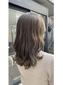 前に入れたハイライトがきれいに残っていたのであまり色味が入りすぎないように明るめのアッシュグレーを被せ、ハイライトの筋感を出しました。ハイライトの白っぽさが可愛いカラーです!!