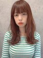 外ハネ 鎖骨ロブ×アプリコットベージュ 重めバング 韓国風