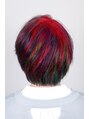 赤ベースに紫、緑、青の4色メッシュカラー。完全ランダムなので分け目や流し方次第で大幅にイメージが変わります!