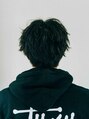 センターパートでわけ、ワイルド感もでておしゃれなメンズパーマスタイルです。パーマは強くかけすぎずに、ウエーブ感のあるパーマにしています。 目元からかけてしまうとボリュームが出てしまうので、中間から毛先にかけてパーマをかけています。