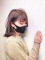外ハネワンカールで決まるミディアムウルフ。透明感ある柔らかモテカラー。