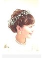 かすみ草をちりばめた花嫁ヘア。ブライダルヘアメイクもご相談下さい。