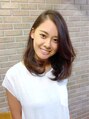 明るめクリアベージュのやや前下がりのAラインボブ。表面のみレイヤーを入れて重くなりすぎないようスライドカットをして束感と動きを出しました。バングは眉上で短めにカット。シンプルな中にも透けバングでオシャレな雰囲気になるようにしました。