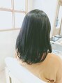 ブルー系の黒髪。毛先は重さを残しつつ束感と顔周りに動きがでるようにカット。ハンドブローだけでもおさまりやすくしています♪