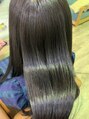 暗いトーンでも存在感があるブルーとグレーを合わせたカラーにロングレイヤーベースのカット!煌水とトリートメントでさらに極艶に!