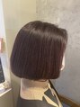パツっと切ったミニボブもほんのり前下がりにしてるのでどこか大人っぽいシルエットに!カラーもバイオレットを使ってショコラ系カラーに!