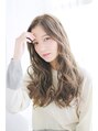 顔まわりをリバースに巻かれた、小顔効果もあるミックスカールです。透け感のあるグレージュがより柔らかさを出します。