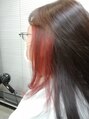 インナーカラー両サイドをレッドを入れたイヤリングカラー