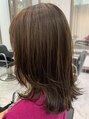 アッシュが強いとくすみすぎて顔色が、、そんな方はブラウンやベージュを混ぜてカラーリングすると◎寒色系ですがとても柔らかいお色に!似合う配合をしっかり提案させて頂いております!レイヤースタイルなのでワンカールでふわっと巻いて完成です☆
