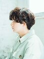 サイドツーブロックの短すぎないマッシュスタイル。全体的にパーマをかけてスタイリングがしやすいようにしました。黒よりも軽く見えるように少し明るめのアッシュで染めました。ムースもしくは軽めのワックスがおすすめ。かっちりしたいときはジェルでも◎