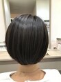骨格を見ながら丁寧にカット。サイドの髪のクセも見極めて切ります。後頭部絶壁気味でも補正カットします。360°全方向ツヤツヤです!