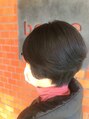 前髪長めのカチッとショート!まだパーマが残っているのでスタイリング次第でラフなショートスタイルにも♪