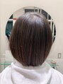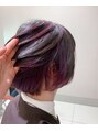 重めのマッシュボブスタイルに、ケアブリーチでインナーをしっかり抜いて、パープルを入れました。(EARTH恵比寿)