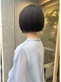 ぱつっと切りっぱなしのボブにピラミンゴカラーで透明感のあるチェリーレッドに。赤すぎず光に当たると紫にも光るやわらか暖色カラー。ブリーチ無し。
