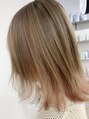 全体ブリーチして表面はミルクティーベージュ、インナーにはピラミンゴピンク♪