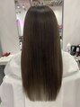 ブリーチ1、2回した状態からアディクシーカラーのスモーキットパーズをベースに染めています!さらに超音波Aujuaトリートメントでツヤ感もUP!